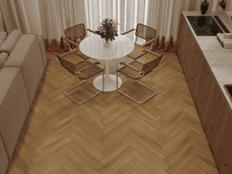 NORLAND PARQUET S 1055-14 Provence представлен в привлекательном ореховом оттенке. Натуральная текстура древесины передана с точностью благодаря полуматовой поверхности, добавляющей ламинату особую глубину и богатство. Тиснение обеспечивает плавный переход между элементами, подходящее для современного интерьера.