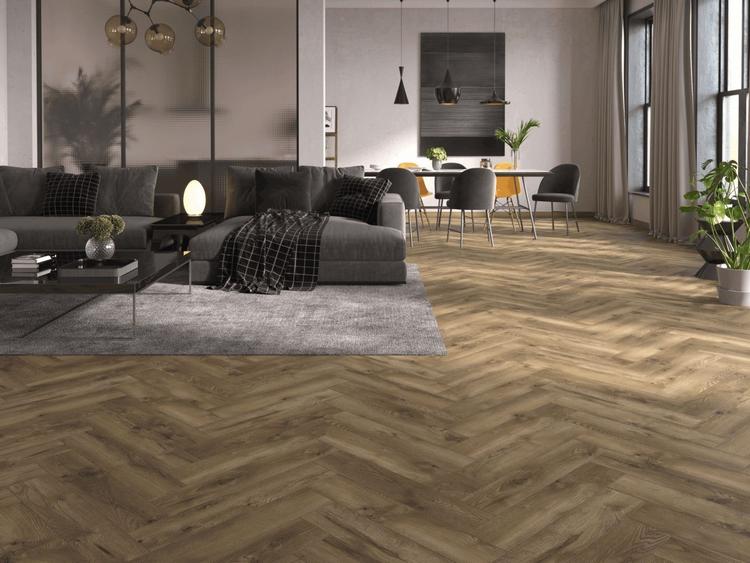 Новая коллекция ламината VILLE – это трендовые декоры в сочетании с непревзойденной элегантностью укладки «английская елка» и с аутентичной текстурой матового дерева. Этот вид укладки придает полу классический и элегантный вид, а также позволяет создать неповторимый интерьер в любом помещении.